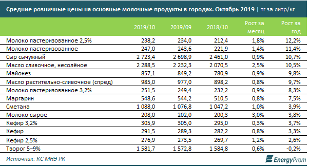 В целом за 2018 год объём производства молока и молочных продуктов составил 284,9 млрд тг, в 2017-м — 240,2 млрд тг.
