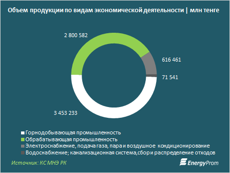 Региональным аутсайдером стала Костанайская область, где индекс физического объема промышленной продукции упал на 15,7%.