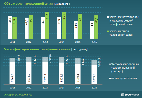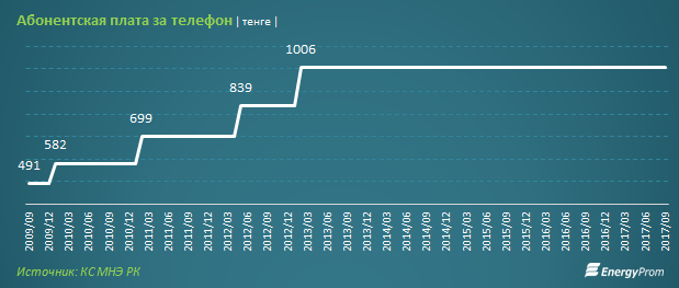 Абонентская плата за телефон, с учетом падения спроса на услугу, не увеличивалась с марта 2013 года, когда последний раз выросла с 839 до 1006 тг в месяц.