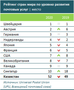 Развитие почтовых сервисов в РК ухудшилось: в рейтинге стран мира Казахстан потерял три позиции и опустился на 52-е место