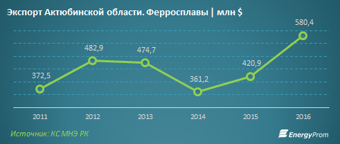 Небольшую поддержку оказал экспорт 650 тысяч тонн ферросплавов на сумму $580,3 млн, что больше 2015 года на 38%. Отметим, что Китай является основным покупателем ферросплавов у РК.