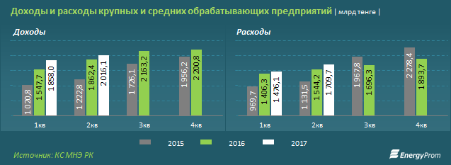 Причина более низких темпов увеличения прибыльности в крупном секторе обрпрома — менее интенсивный рост доходов по сравнению с ростом расходной части бюджетов. За 2 квартал крупные и средние предприятия в общей сложности заработали 158 млрд тенге, или на 8,5% больше, чем кварталом ранее.