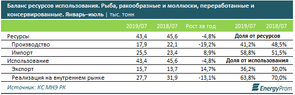 В 2019 году утвержден лимит вылова рыбы в объёме 51,8 тыс. тонн. За пользование рыбными ресурсами в республиканский бюджет за полугодие поступило 307,4 млн тенге.