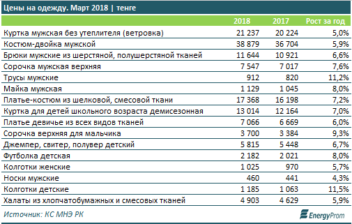 По итогам марта, цены на мужскую одежду в магазинах и торговых точках страны заметнее всего выросли в сегменте нижнего белья. Так, трусы подорожали сразу на 11,2% за год, майки — на 8%. Брюки выросли в цене на 6,6%, костюмы-двойки — на 5,9%, сорочки — на 7,6%.