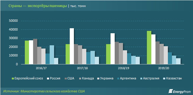 Казахстан является одним из крупных производителей сельскохозяйственной продукции — прежде всего пшеницы, по экспорту которой Казахстан занимает восьмое место в мире. Впрочем, за последние два года объёмы экспорта снизились на 19%.