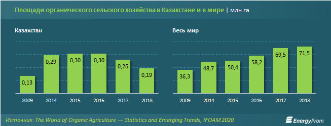 В Казахстане, напротив, посевные площади под органическую продукцию сокращаются (−25%)