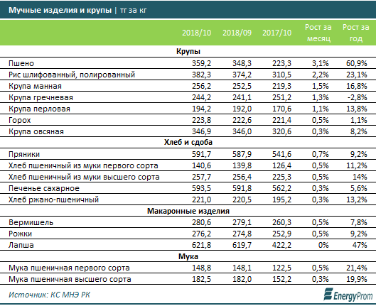 Среди круп за сентябрь заметнее всего подорожали пшено (на 3,1% к августу) и рис (плюс 2,2%).