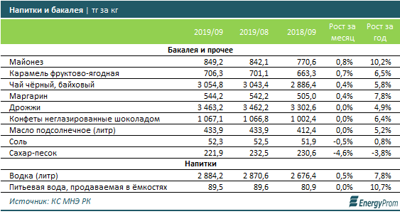 Напитки и бакалейные товары не показали роста цен более 1%. Сахар, к примеру, напротив, подешевел сразу на 4,6% за месяц.