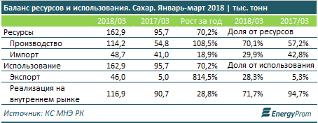 Производители сахара в текущем году бьют рекорды — после прошлогоднего спада, производство за январь-апрель 2018 достигло сразу 150,1 тыс. тонн — на 81,9% больше, чем годом ранее.