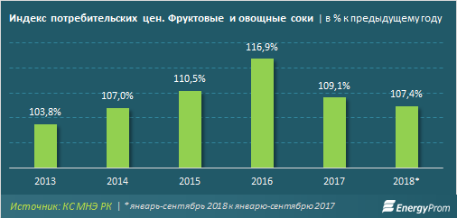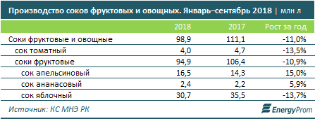 В целом по итогам трёх кварталов выпуск фруктовых и овощных соков уменьшился на 11% в сравнении с аналогичным периодом прошлого года.