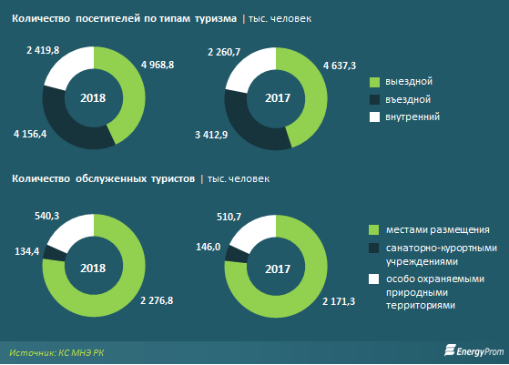 Так, количество выездных туристов выросло год-к-году на 7,1%, до 5 миллионов человек, въездных — сразу на 21,8%, до 4,2 млн человек. Кроме того, развивается и внутренний туризм — количество туристов увеличилось на 7%, до 2,4 млн человек.