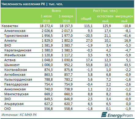 В целом по итогам I полугодия количество казахстанцев достигло уже 18,27 миллиона.