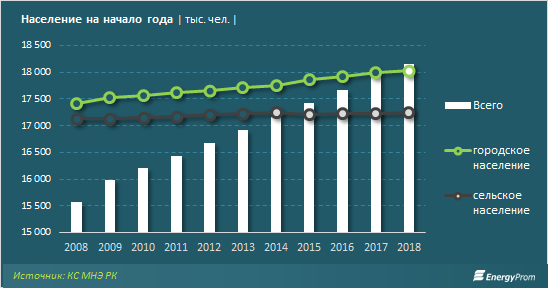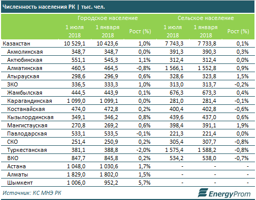 Так, количество городского населения выросло с начала года на 1% (плюс 105,5 тысячи человек), до 10,53 миллиона. В то же время, число сельских жителей за полугодие увеличилось лишь на 0,1% (всего плюс 9,6 тысячи человек), до 7,74 миллиона казахстанцев к июлю текущего года.