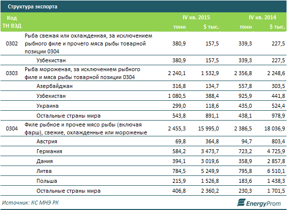 Самые крупные импортеры казахстанской рыбы — страны ЕС. Так, Литва закупила филе рыбы на 5,3, Германия — на 3,5, Дания — на 3 миллиона долларов.
