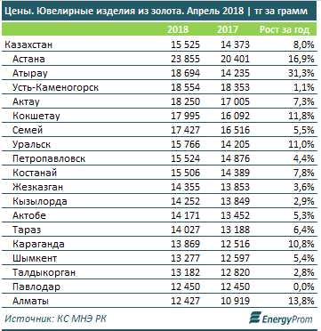 Также столица входит в ТОП-3 самых «дорогих» крупных городов РК и по серебряным украшениям.