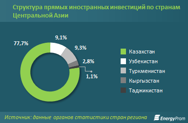 Валовой приток прямых иностранных инвестиций в страны Центральной Азии за 13 лет превысил 378 миллиардов долларов. Из них более 77% пришлось на Казахстан