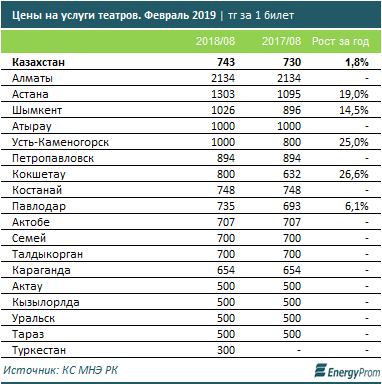 Казахстанские театралы могут не волноваться: цены на билеты увеличились за год всего на незначительные 2%.