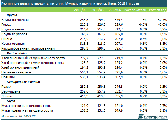В сегменте круп и мучных изделий особых колебаний цен не отмечалось — лишь гречка продолжает дешеветь: еще минус 1,5% за месяц (и минус 32,7% за год).