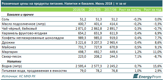 К сезону летних заготовок резко подорожал сахар — сразу на 7,1% за месяц. Впрочем, это все еще на 8,7% меньше, чем в июне 2017. Также выросли цены на маргарин — плюс 1,2% к маю.