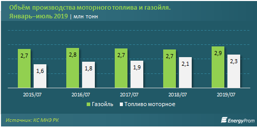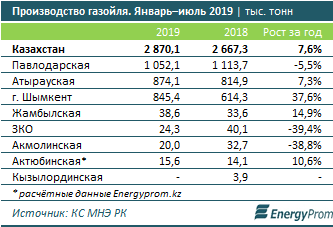 По объёму производства дизельного топлива лидирует Павлодарская область: почти 1,1 млн тонн — на 5,5% меньше, чем в прошлом году.