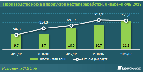 В целом в сегменте выпуска кокса и продуктов переработки объёмы производства составили за январь–июль 2019 года почти 11,2 млн тонн, годом ранее — 10,7 млн тонн. Это уже третий год подряд, когда объёмы производства в соответствующем периоде превышают 10 млн тонн.