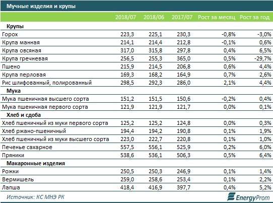 В сегменте мучных изделий и круп резких месячных колебаний цен также не заметно.