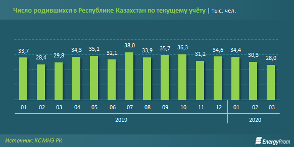 За первый квартал 2020 года в стране родились 92,7 тыс. маленьких казахстанцев — на 0,8% больше, чем годом ранее. За весь прошлый год в стране появились на свет 403,1 тыс. малышей. По суммарному коэффициенту рождаемости, то есть среднему количеству детей, рождённых женщиной в течение жизни, Казахстан опережает, например, соседнюю Россию (2,2 против 1,6, по данным отчёта ЦРУ США).