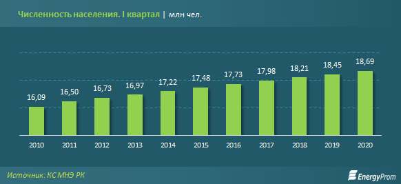 В целом по итогам первого квартала нас, казахстанцев, в стране уже 18,69 млн человек — на 1,3% больше, чем годом ранее. Темпы роста в 1,3–1,4% за год сохраняются все последние годы.