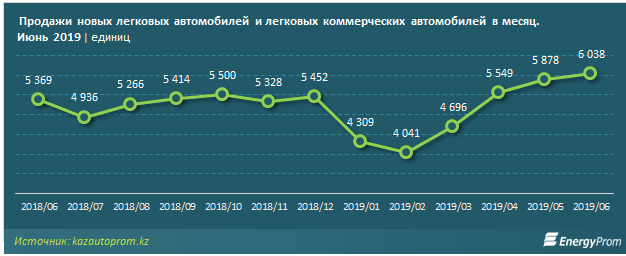 За июнь 2019 года казахстанцы приобрели чуть более 6 тысяч новых легковых автомобилей, включая легковые коммерческие. Это на 2,7% больше, чем в мае, и на 12,5% больше по сравнению с июнем прошлого года.