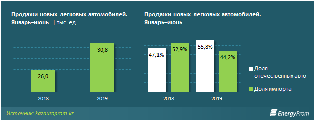 Продажи новых легковых автомобилей, выпущенных казахстанскими автозаводами, за год выросли на 40,1%, до 17,1 тысячи авто за полугодие. Импортных машин продали всего 13,6 тысячи — на 1,1% меньше, чем годом ранее.