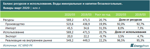 Заметим, пить казахстанцы стали больше: потребление воды и прочих напитков на внутреннем рынке страны за январь–март выросло в сравнении с прошлым годом сразу на 22,2%.