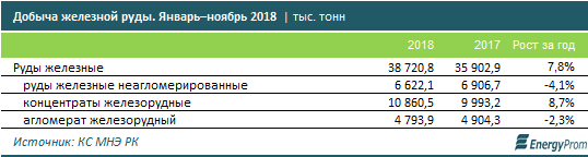 За 11 месяцев 2018 года было добыто железной руды на 265,4 млрд тг — на 18,4% больше, чем годом ранее.