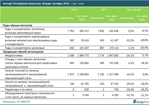 В перерабатывающем секторе ферросплавов экспортировано сразу на 24,1% меньше, чем годом ранее, в тоннах, однако на 0,1% больше — в деньгах, лома черного металла и шихтовых слитков — на 4,2% больше в натуральном выражении и на 18,2% — в денежном.