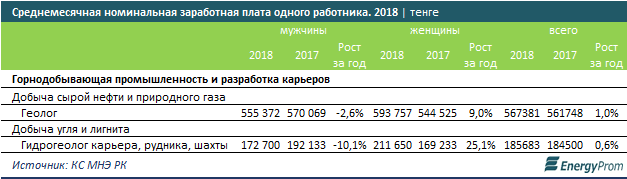 Между тем, геологи — одни из самых высокооплачиваемых специалистов в стране. В 2018 году заработная плата геологов в сфере добычи сырой нефти и природного газа выросла на 1% и достигла 567 тыс. тг; гидрогеологов карьеров, рудников и шахт в сегменте добычи угля и лигнита — на 0,6% за год, до 186 тыс. тг.