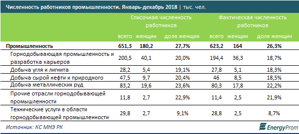 Впрочем, в целом в горнодобывающей отрасли женщины составляют всего 20% от всей списочной численности работников и 18,7% — от фактической.
