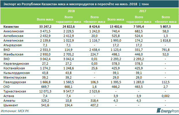 По итогам 2018 года поставки мяса выросли в 2,5 раза, поставки «красного» мяса — в 3,3 раза; «белого» мяса — на 45,1% за год.