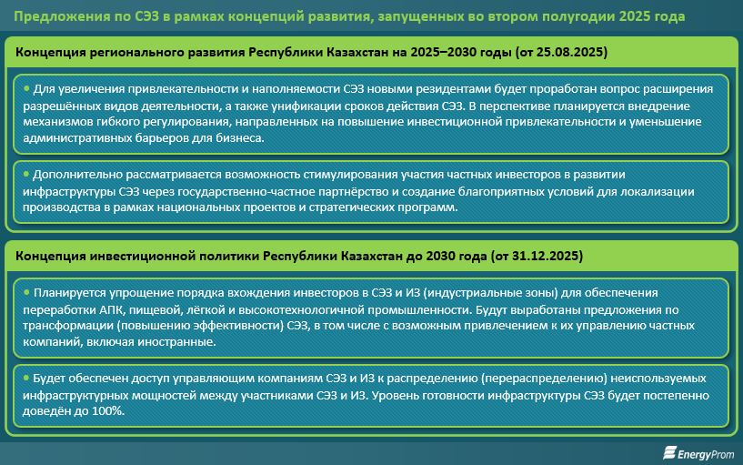 Рассмотрим предложения по СЭЗ в рамках концепций развития (1,2), запущенных во втором полугодии 2025-го.