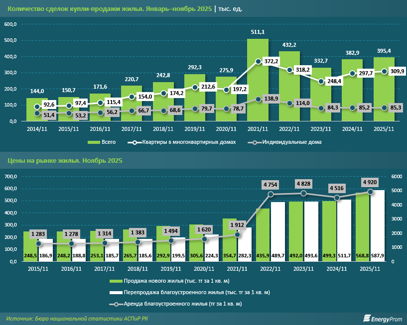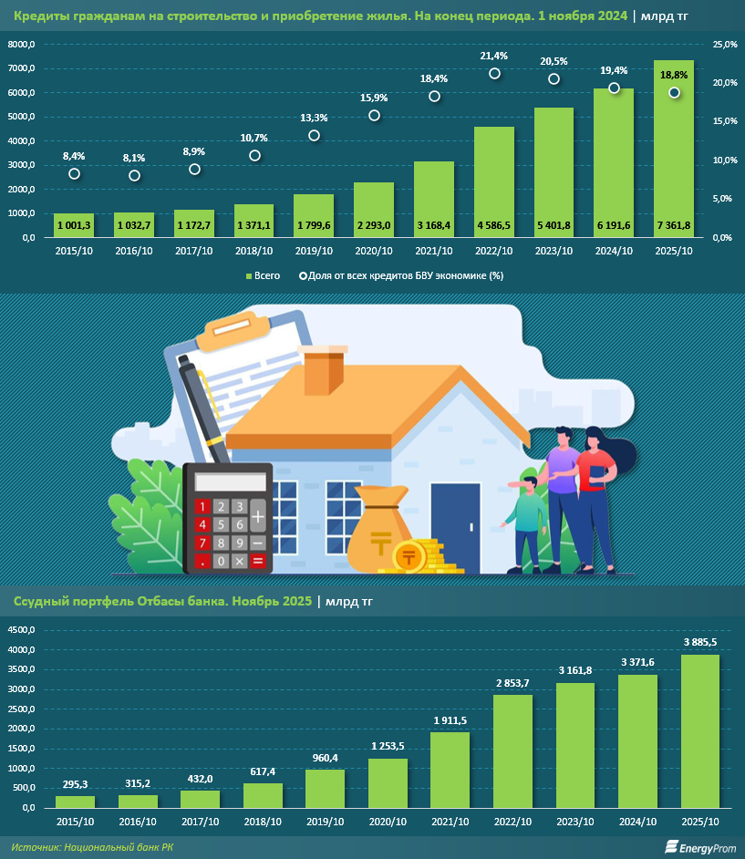 В текущем году жилищные программы — как государственные, так и собственные программы Отбасы банка, а также в целом система жилищно-строительных сбережений — также пользуются высоким спросом у населения. Так, за неполный 2025 год казахстанцы открыли в Отбасы банке 1 млн новых депозитов — максимум за всю историю работы фининститута. Ранее ежегодно открывалось около 600 тыс. вкладов. В системе жилстройсбережений сегодня делают накопления 3,4 млн человек. В 2025 году жильё приобрели 72,8 тыс. клиентов Отбасы банка. Каждый третий заёмщик при этом стал владельцем первого в жизни жилья.