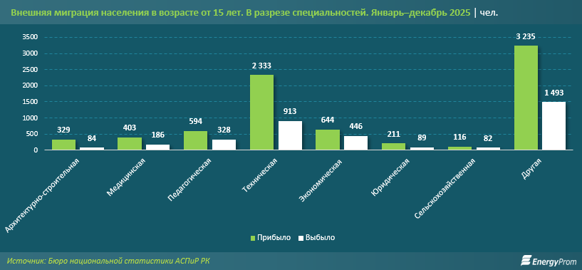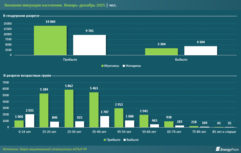 Итог прошлого года показывает структурную трансформацию внешней миграции Казахстана. После периода масштабного оттока страна перешла к устойчивому положительному сальдо, обеспеченному сокращением эмиграции и усилением притока из стран Центральной Азии и Китая. Миграция носит преимущественно трудовой, мужской и молодёжный характер, концентрируется в экономически развитых регионах и в целом усиливает человеческий капитал страны.