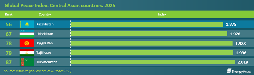 Overall, the Global Peace Index 2025 points to a continued deterioration in global peacefulness amid a record number of armed conflicts and broader state involvement in external confrontations. At the same time, against the backdrop of this global decline, Central Asian countries are showing moderately positive dynamics, with Kazakhstan retaining its status as the most peaceful country in the region while improving both its ranking position and overall index score.