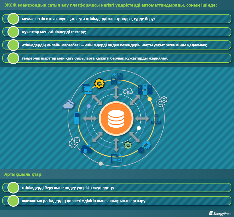 • EnergyTech жүйесімен бірігу (отын-энергетикалық кешендерді басқарудың бірыңғай мемлекеттік жүйесі);
