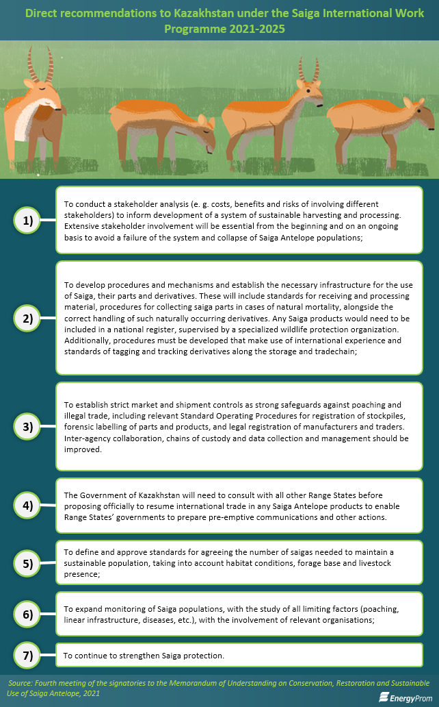 Note: This is not only about maintaining public confidence in the Republic of Kazakhstan, but also about the specific recommendations of international experts that were given to Kazakhstan during the meeting of the signatories of the ‘Memorandum of Understanding concerning Conservation, Restoration and Sustainable Use of the Saiga Antelope’, held in September 2021.
