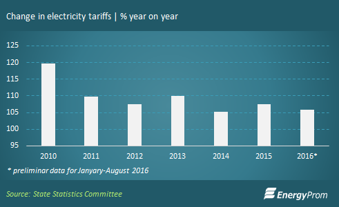Electricity tariffs increased by 5.8% year on year on average in Kazakhstan in January-August 2016.