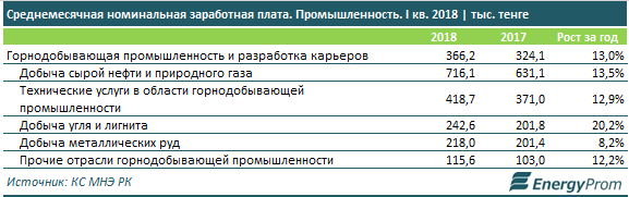 В горнодобывающем сегменте, ожидаемо, самые высокие зарплаты — в нефтегазовой отрасли: сразу 716,1 тыс. тг, +13,5% за год.