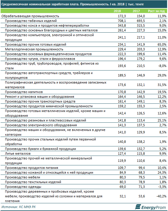 Также немало получают специалисты в сферах техуслуг горнопрома (418,7 тыс. тг, +12,9%), и добычи угля (242,6 тыс. тг, +20,2% за год).