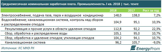 В сегменте водоснабжения и водоотведения, а также контроля над сбором и распределением отходов, лучшие зарплаты — у сотрудников, занятых рекультивацией и прочими услугами по удалению отходов (112,8 тыс. тг, на 22,3% больше, чем год назад).